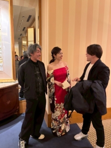 パーティー後のひととき、出版塾恩師の長倉さん、原田さんと