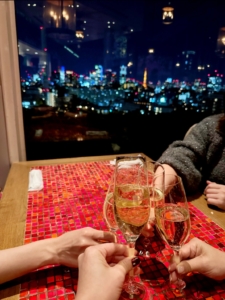 夜景と東京タワーを見ながら、乾杯!!