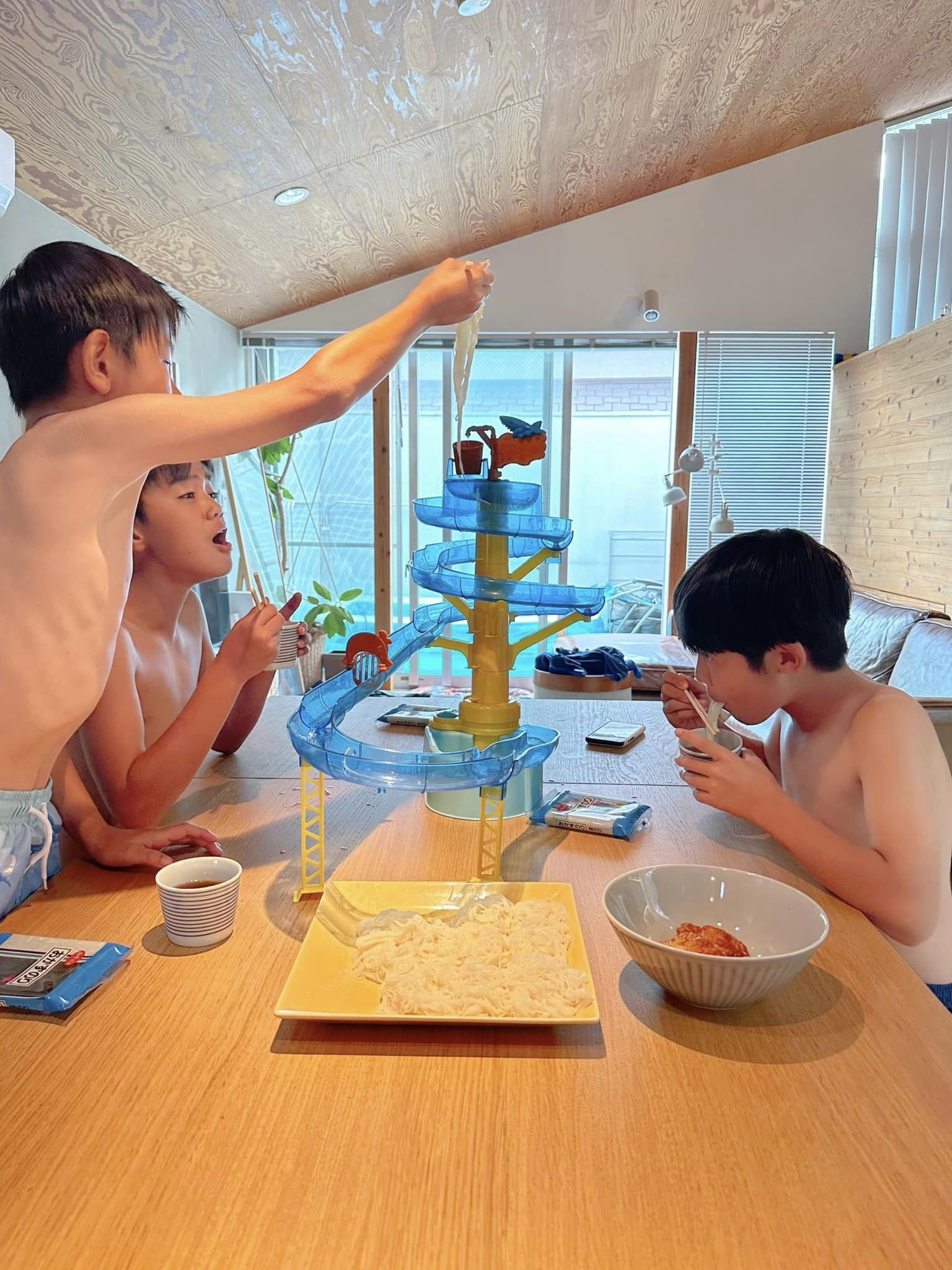 そうめんと家のプールで何時間も見事なはしゃぎっぷりの小6男子たち^^まだまだかわいい♡
